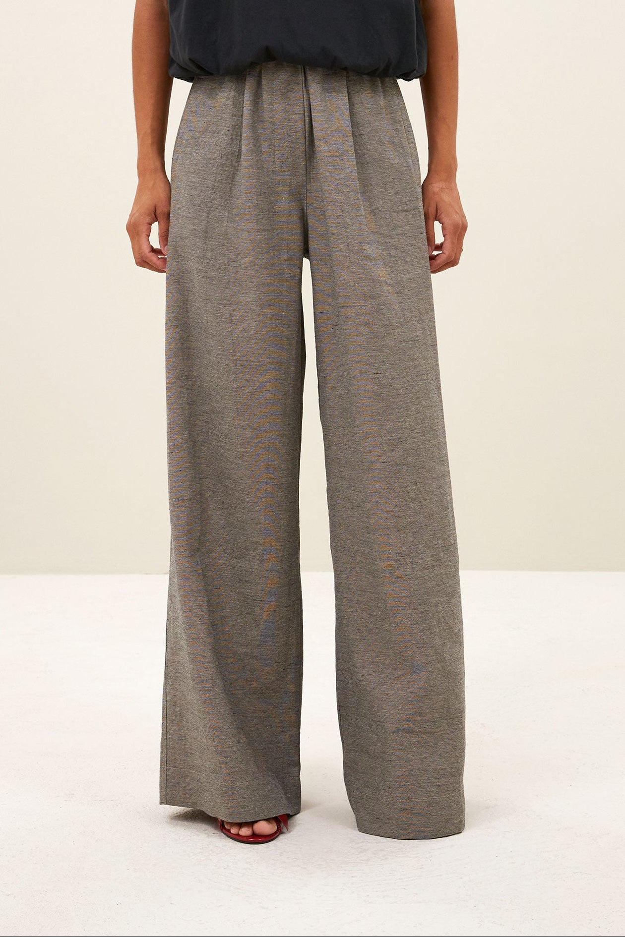 Die "Benji Pant" ist eine weite Hose mit einer bequemen, locker sitzenden Passform und einem hohen Bund, der deine Figur dezent betont. Dank der langen Beinlänge und praktischen Seitentaschen ist diese Hose perfekt für jeden Tag, bei der Stil und Komfort mühelos zusammenkommen. Ideal für alle, die entspannte Eleganz lieben.