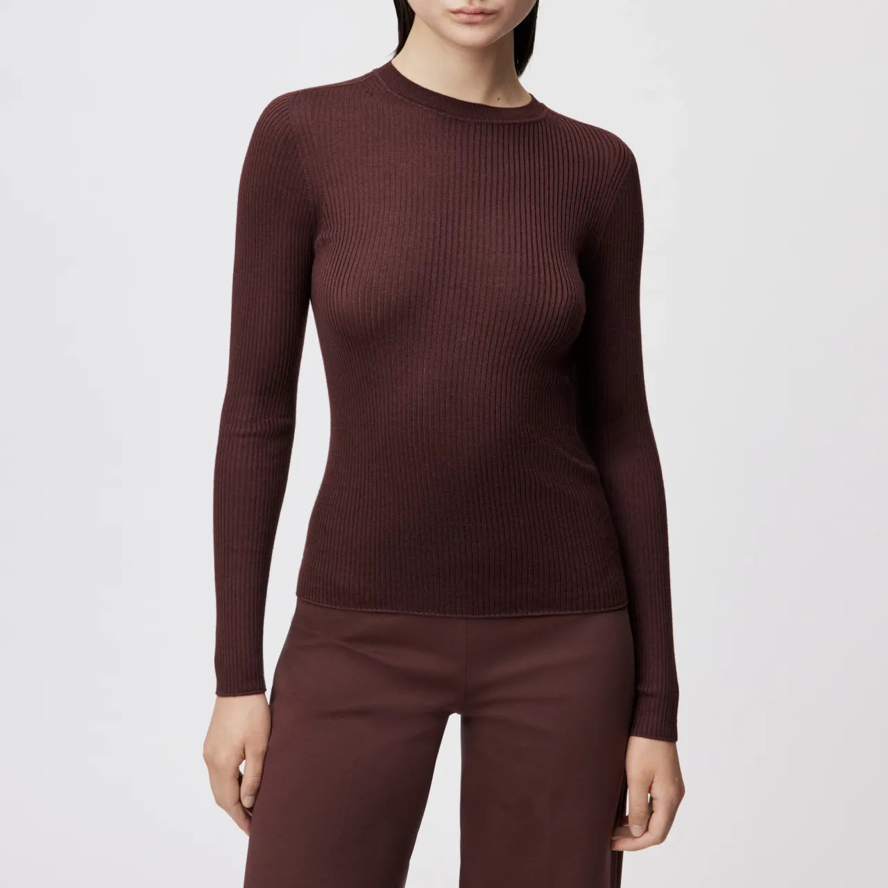 "Erma" ist ein klassisches schmales Ripp-Shirt mit Rundhalsausschnitt. Das Longsleeve hat eine elegante und taillierte Passform und kann somit alleinestehend oder im Layering getragen werden.