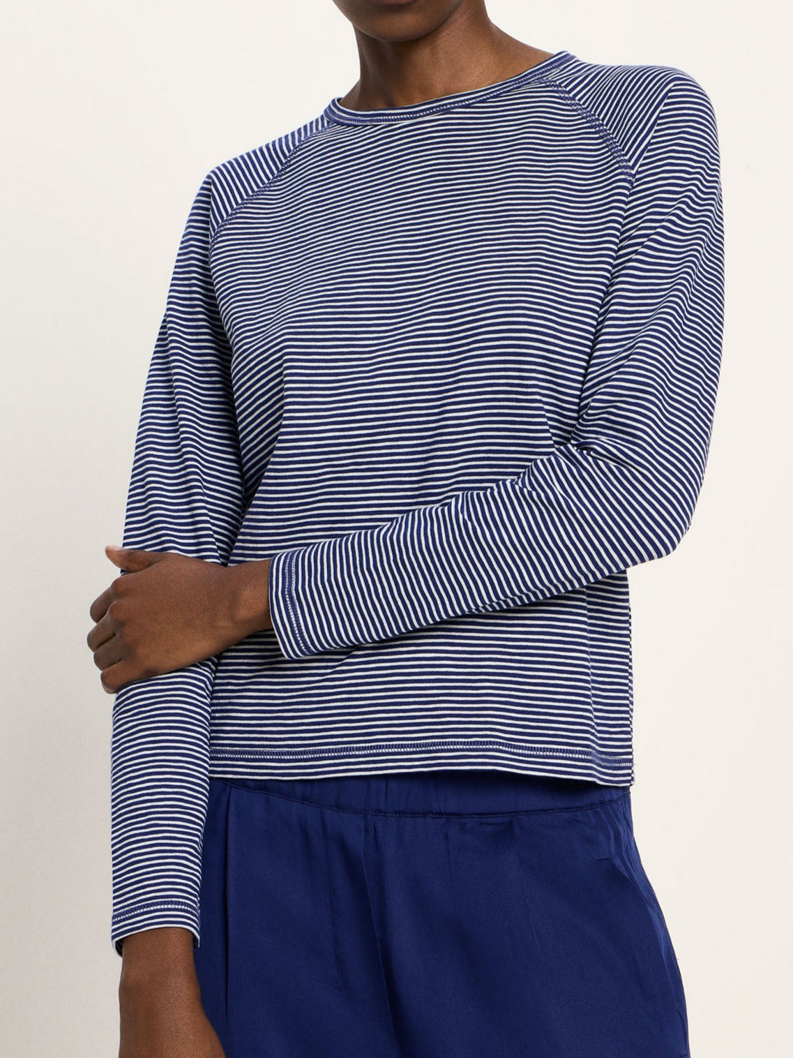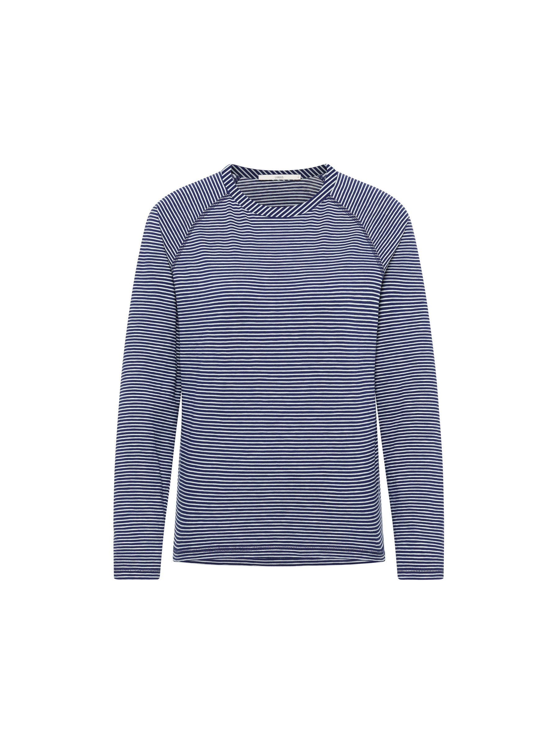 Das Langarm-Raglanshirt aus Bio-Baumwolle überzeugt durch seinen leicht strukturierten Jersey. Der Raglanschnitt unterstreicht den entspannten Charakter, während der weiche Griff und die atmungsaktive Qualität für angenehmen Tragekomfort sorgen.