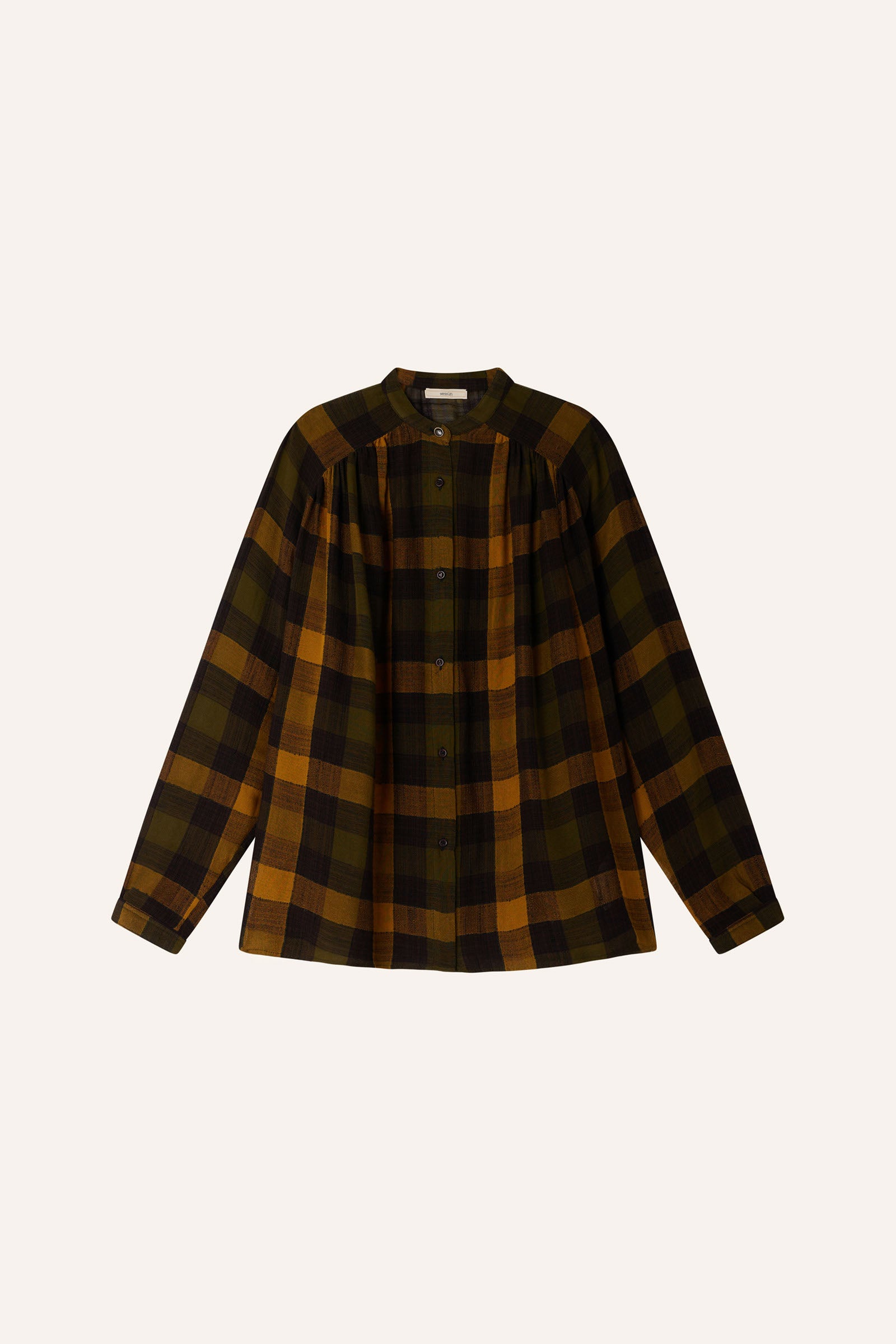 "Nicolas" ist ein weit geschnittenes, gerafftes Hemd aus leichter Gaze mit Madraskaros und Noppengarnen mit Rundhalsausschnitt. Es hat lange Raglanärmel und Raffungen auf der Vorder- & Rückseite.