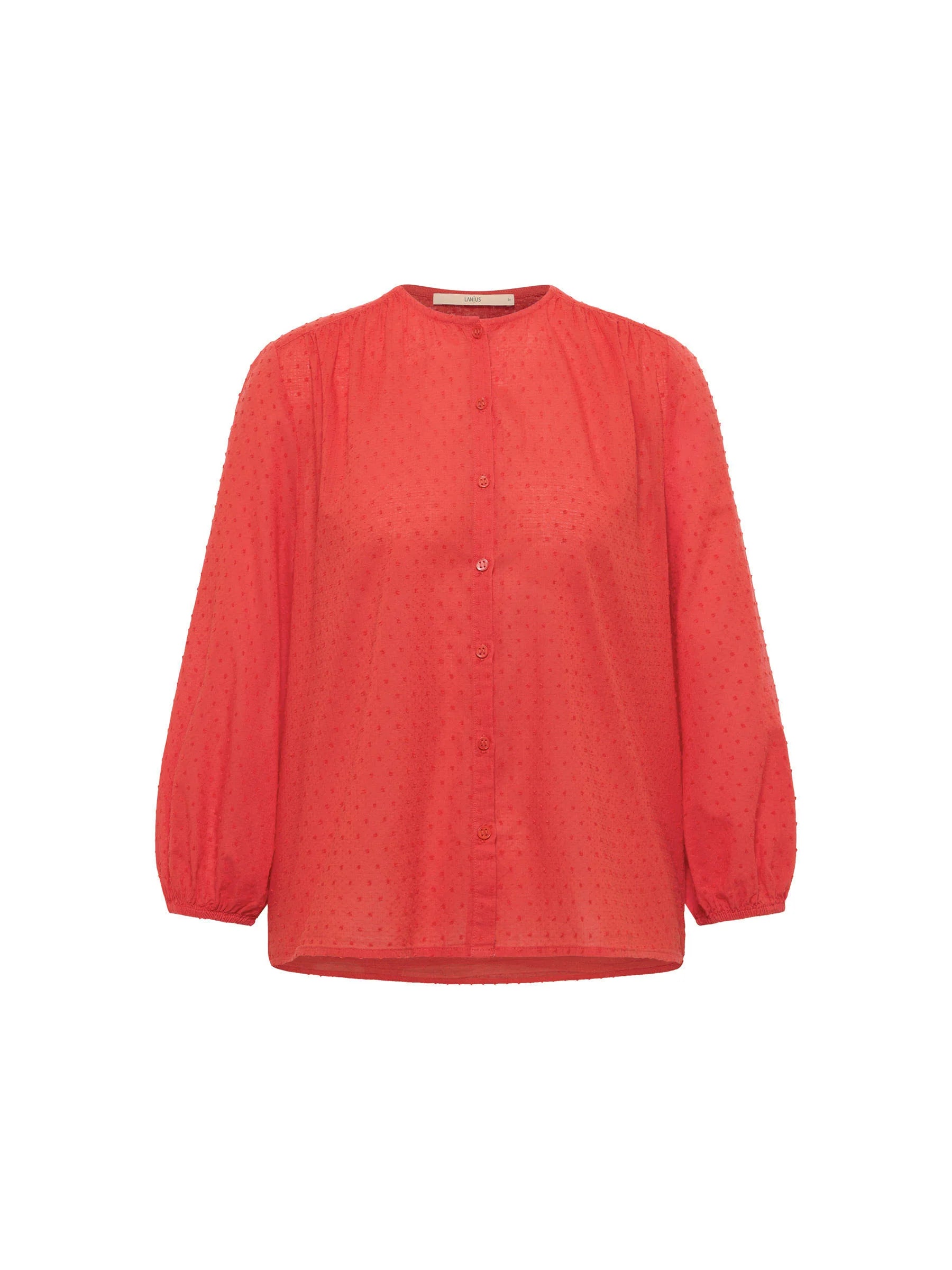 Die 3/4-Arm-Bluse besticht durch ihre strukturierte Oberfläche und ein angenehm leichtes Tragegefühl. Die feine Webstruktur mit Ton-in-Ton-Noppen verleiht der Bluse eine lebendige Optik. Ideal für stilvolle Everyday-Looks – ob zur Jeans, zur weiten Stoffhose oder lässig über Rock getragen.